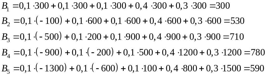 Рассмотрим ситуацию, когда коммерсант привез 4 ящика. Если спрос равен 4 ящикам, то прибыль будет равна 1200 руб. При спросе 3 ящика прибыль составит 500 руб. Для спроса 2 ящика получаем убытки 200 руб. (результат игры равен – 200). Для спроса 1 ящик результат равен – 900 руб. Если же спрос равен 5 ящикам, то продается только 4, так как больше товара нет, и спрос остается неудовлетворенным. В этом случае, как и при спросе, равном 4, результат игры равен 1200 руб. Для других вариантов завоза результаты получаются аналогично.