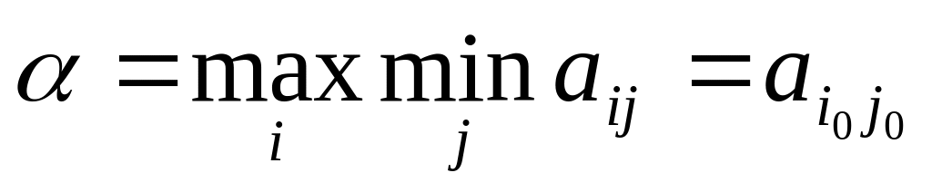 Итак, если игрок А будет придерживаться максиминной стратегии, то ему при любом поведении игрока В гарантируется выигрыш, во всяком случае не меньше .