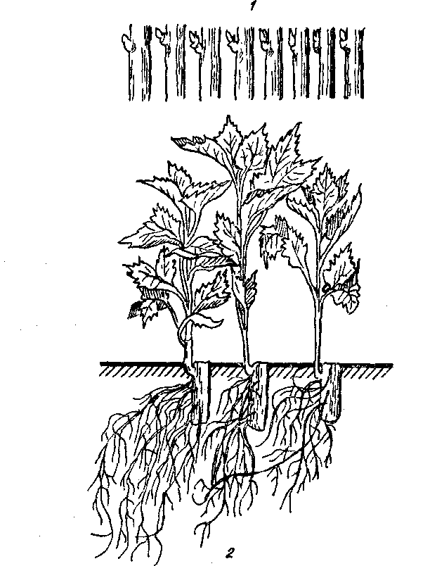 Рис. 16. Размножение смородины однопочковыми одревесневшими черенками: