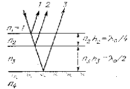3.оптическая толщина нижнего слоя равна 0/2 волны, а верхнего -0/4.