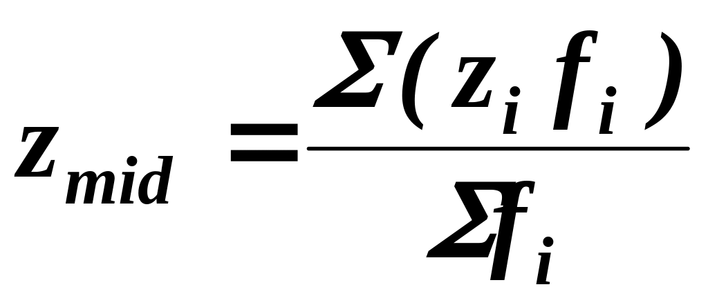 zmid – середній коефіцієнт, який характеризує поверхню стоку і визначається як середньозважене (п.А.7 [3]) а часткою fi площ з певним характером поверхні, якому відповідає коефіцієнт zi: