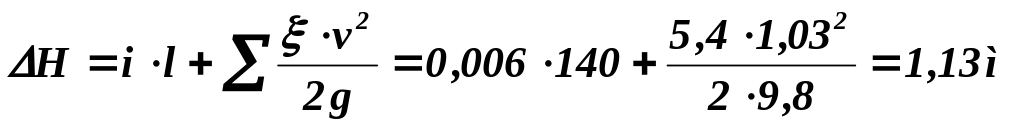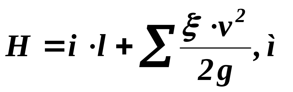 де і – питомий опір в дюкері; l – довжина труби дюкера, м; ξ – коефіцієнт опору, що характеризує розмір втрат напору за рахунок місцевих опорів в дюкері; v – швидкість стічної води в дюкері, яку приймають від 1 до 1,5м/с; g – прискорення вільного падіння, м/с2.