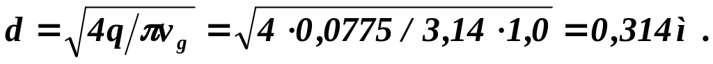 де q – розрахункова витрата одного трубопроводу, м3/с.
