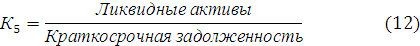 К5 – отношение ликвидных активов к краткосрочной задолженности