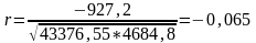 Значение r, очень далеко от -1, следовательно, подтверждается отсутствие корреляции.