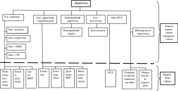 На підприємствах застосовують, в основному, лінійно-функціональні структури управління.