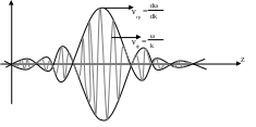 Групова швидкість – це швидкість поширення огинаючої сигналу, якщо залежність фазової швидкості від частоти є достатньо малою (див. рис).