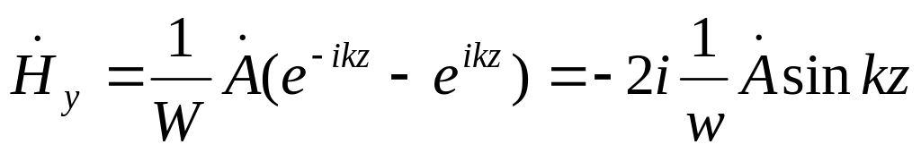 На рис. показано схематичний розподіл амплітуди і фази напруженостей електричного і магнітного полів стоячої хвилі за координатою z.