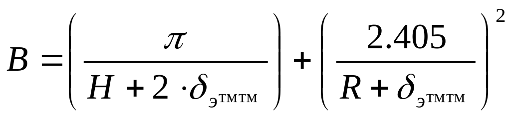 Рдиф.=(1+B2•L2 )-1 - вероятность нейтрону избежать утечки в процессе диффузии. Где B - геометрический параметр (зависит только от размера реактора), который для цилиндрической активной зоны радиусом R (м) и высотой H (м) определяется из соотношения: