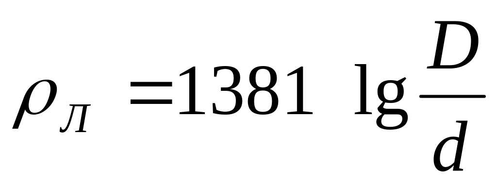 Волновое сопротивление коаксиальной линии с воздушным заполнением (в омах) определяется выражением