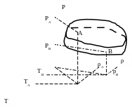 А и В - две различные точки системы, которые характеризуются различными наборами значений параметров системы. Точка А характеризуется значениями температуры, давления и плотности ТА, РА и ρА, а точка В - значениями ТВ, РВ и ρВ.