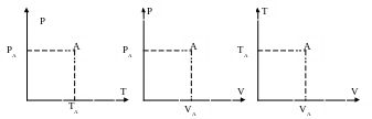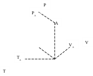 Чаще же графически состояние системы изображают на одной или нескольких координатных плоскостях. Так, рисунок 1 можно представить как совокупность трёх проекций состояния A на плоскости P-V, P-T и V-T (см. рис. 3)