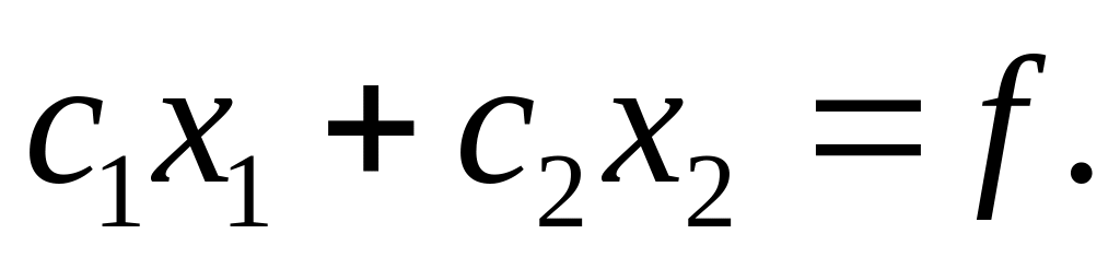 Выберем произвольное значение целевой функции f=f0 , например f0 =0. Получим c1x1+c2x2=f0 . Это уравнение прямой линии MN. В точках прямой MN целевая функция сохраняет одно и то же постоянное значение f0.