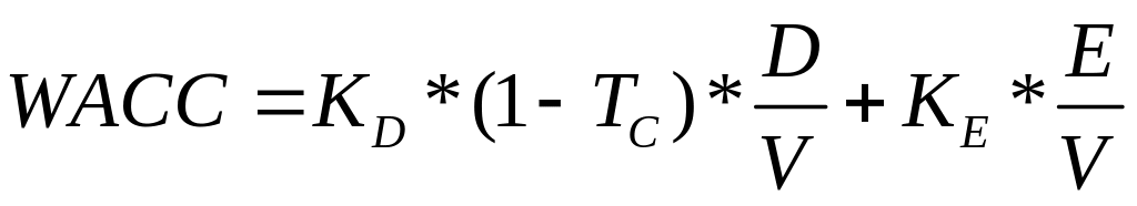 где КD – стоимость заемного капитала компании (долга); KE – стоимость собственного капитала компании (активов); D – рыночная стоимость долга; E – рыночная стоимость собственного капитала; V = D+E – рыночная стоимость компании; TC – ставка налога на прибыль.