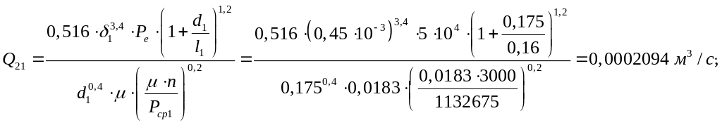 Q1 = Q11 + Q21 = 0,000277 + 0,0002094 = 0,0004864 м3/с;