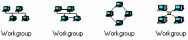 Поставить на окно Top изображение устройства рабочей группы. Для этого сделать окно Top текущим окном, щёлкнув по нему мышью. Перейти к стандартному режиму, затем выбрать группы Buildings, Campuses and LAN workgroups в браузере Устройств. В панели «Изображения» появятся здания, университетские городки и изображения устройства рабочей группы (рис. 8).