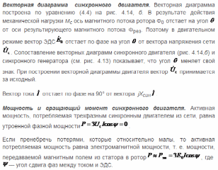 Электромагнитный момент машины Mа пропорционален току нагрузки I, потоку Ф и зависит от угла сдвига между ними. Если при работе на изолированную нагрузку или при параллельной работе отстает от магнитного потока на угол 0-180°, то Ma>0, и имеет место генераторный режим. Если же при параллельной работе ток опережает магнитный поток на угол 0-180°, то Ma<0, и режим будет двигательным.