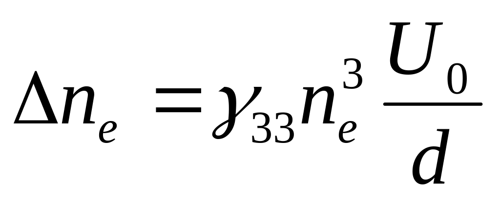 Например, если в направлении x кристалла приложить электрическое напряжение U0, то при толщине кристалла d коэффициент преломления вдоль оси х и y для обыкновенной и необыкновенной волн будет иметь вид: