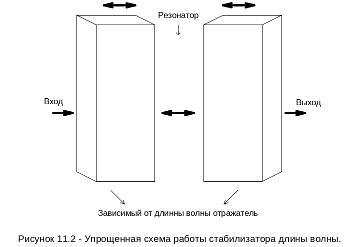 Успешная работа сетей WDM и DWDM во многом зависит от стабильности источника сигнала. Для того чтобы приемники, фильтры, аттенюаторы и волновые разветвители правильно выполняли свои функции, частота сигнала должна выдерживаться с очень высокой точностью. Это обеспечивают стабилизаторы длины волны (рисунок 11.2).
