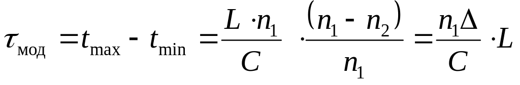 Результирующее значение импульсов за счет модовой, материальной и волноводной дисперсией определяется выражением: