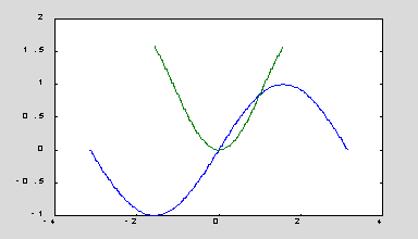 x2 = x1/2; y2 = x2.*sin(x2); plot([x1' x2'], [y1' y2']) % рис. д