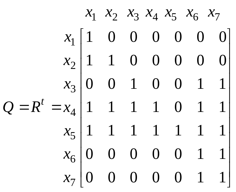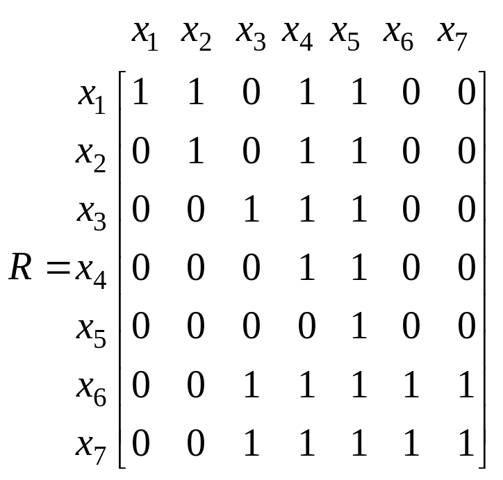 Потрібно відмітити, що оскільки всі елементи матриць R і Q рівні 1або 0, то кожну стрічку можна зберігати в двійковому форматі, використовуючи одне (або більше) машинних слів. Таким чином знаходження матриць R і Q з вичисляючої точки зору являється дуже простою завданням, оскільки об’єднання множин в відповідності з виразами (1) і (2) і зрівняння поточних множин після кожного об’єднання, проведене для вияснення необхідності продовження процесу побудови відповідних множин, - все що можна здійснити на ЕОМ з допомогою однієї логічної операції .