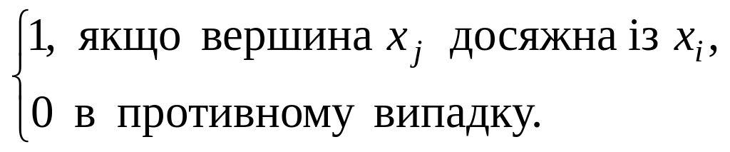 З цього слідує що, матриця досяжностей буде мати вигляд