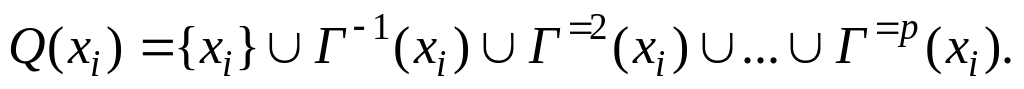 Контрдосяжною множиною Q графа G являється множина таких вершин, що із будь-якої вершини цієї множини можна досягнути вершину . Аналогічно побудови досяжної множини R на основі відношення (1) можна «сформулювати» множину Q , використовуючи наступний вираз: