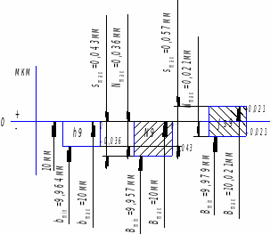 Рисунок 5 – Схема полей допусков для шпоночного соединения.