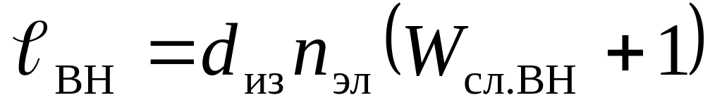 где – толщина междуслойной изоляции, выбираемая по табл. 3.4 в соответствии с величиной рабочего напряжения между двумя слоями; – ширина каналов между катушками, равная 5…8 мм – для масляных трансформаторов, 10 мм – для сухих трансформаторов; – число каналов, выбираемое из условия 4…5 слоев один канал.