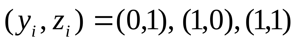 сначала решим первое уравнение, а затем посмотрим, как будет изменяться количество решений при добавлении переменных yi и zi и учёте остальных однотипных уравнений