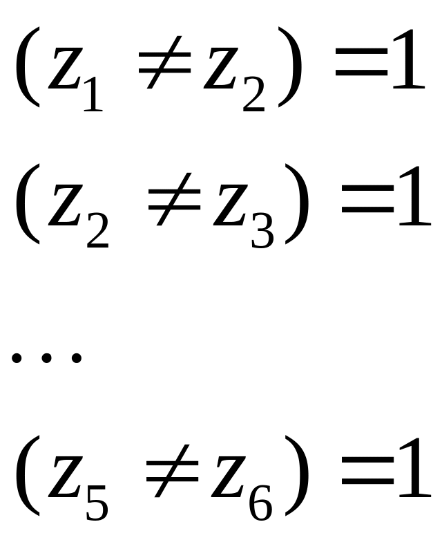 таким образом первое решение X = 0000 даёт 16 = 24 решений системы, решение 0001 даёт 23 ∙ 3 = 24 решений системы, решение 0011 даёт 22 ∙ 32 = 36 решений системы, решение 0111 даёт 2 ∙ 33 = 54 решений и решение 1111 даёт 34 = 81 решений системы;
