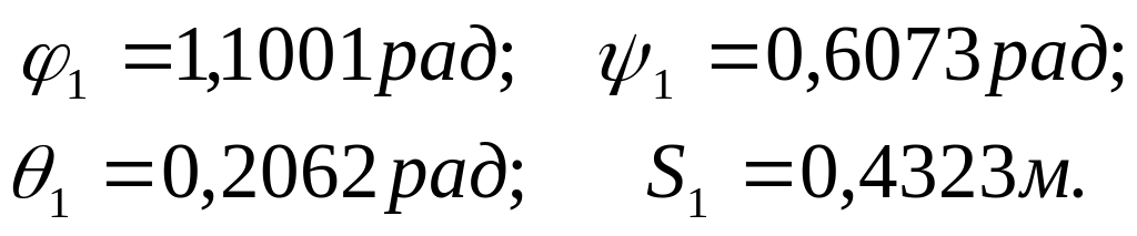 в течение 1с. На рис. 16 изображён в начальном положении механизм манипулятора и показаны положительные направления отсчёта углов , , и расстояния S. Размеры звеньев: а=1,30 м, b=1,10 м, с=0,55 м.