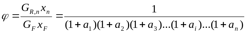 Якщо, крім того, що надходить твердий матеріал уже містить таку ж кількість розчину, як і між щаблями, тобто аг = а, одержимо: