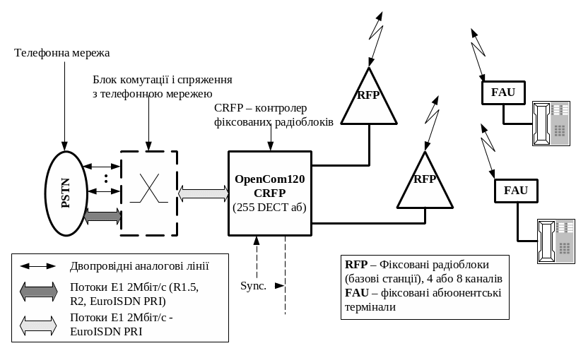 Система фіксованого абонентського радіодоступу стандарту DECT (система WLL DECT ), побудована на базі мікростільникової DECT системи OpenCom 120 виробництва концерну DeTeWe, Німеччина, відноситься до класу систем середньої ємності. Архітектура та можливості даної системи дозволяють надати бездротовий доступ до телефонної мережі до 255 фіксованих абонентів DECT на місцевості, де забезпечуються умови прямого проходження сигналу діапазону DECT (1880 ... 1900 МГц), в радіусі до 7 км. У разі потреби збільшення кількості абонентів системи, існує можливість спільної експлуатації двох систем OpenCom 120 в одному місці за рахунок їх синхронізації, а також використання станцій OpenCom більшої ємності.