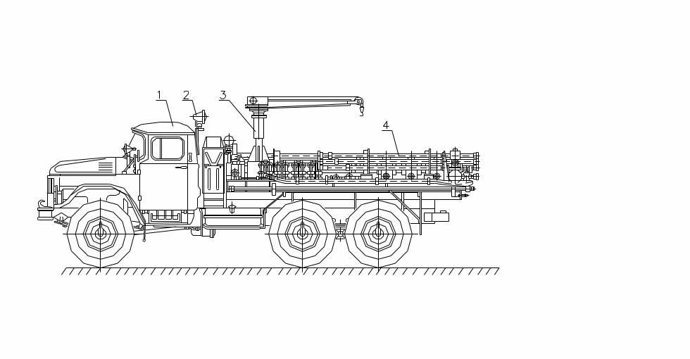 1 – монтажная база оборудования, 2 – фара, 3 – подъемная стрела, 4 – вспомогательный трубопровод