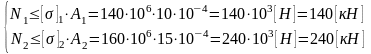 Определим силу , при которой будет соблюдено и условие статики по уравнениям (1.3.1, 1.3.2), и условие прочности (1.3.3).
