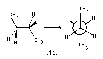 При рассмотрения молекулы бутана вдоль связи С2-С3 помимо упомянутых выше заслоненной и заторможенной конформаций, появились еще две конформации (9) и (10). Им также соответствуют минимумы и максимумы на кривой зависимости энергии напряжения от величины торсионного угла (угол отсчитывается от заслоненной кокформации 8):