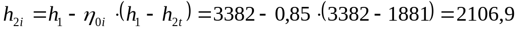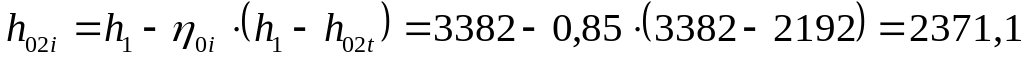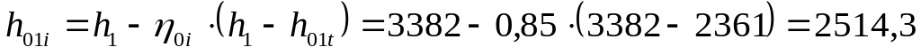 Істинні значення живильних ентальпій в точках О1i, О2i, 2i визначаються по формулах, що наведені нижче, з врахуванням внутрішніх