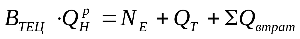 Відповідно до схеми енергобалансу установки ТЕЦ (рис. 10), рівняння енергобалансу має вигляд: