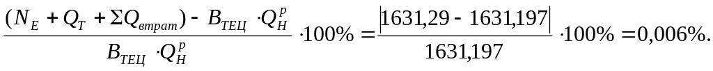 Звідси нев’язка енергетичного балансу установки ТЕЦ складає:
