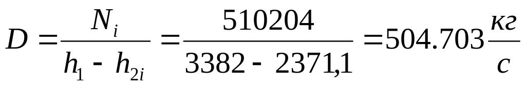 З рівняння енергобалансу робочого тіла, що проходить через турбіну, витрата робочого тіла дорівнює:
