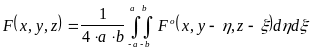 Послеимплантационное трехмерное пространственное распределение примеси F(x,y,z) моделируется посредством использования интеграла статистической функции распределения по переменным ,