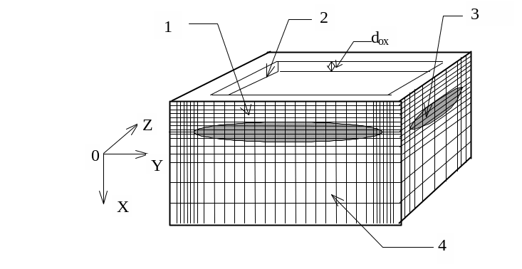 3 – окисел; 4 – подложка; dox – толщина окисла