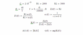 Виконаємо дослідження кола (рис. 1) використовуючи для цього закони Кірхгофа та формули для знаходження опору послідовно та паралельно з’єднаних реактивних елементів кіл. Отримуємо АЧХ та ФЧХ для даного кола. Отримані в результаті розрахунку АЧХ та ФЧХ наведено на рис. 8.