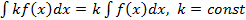 В дальнейшем при интегрировании понадобятся также два очевидных свойства линейности интеграла: