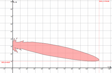 - •Зона превышения пду в вертикальной плоскости для антенны уп "Велком" ррс1 в азимуте 341°