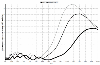 Распределение суммарного ЭМИ в вертикальной плоскости, в азимуте ψп=160°, мкВт/см²
