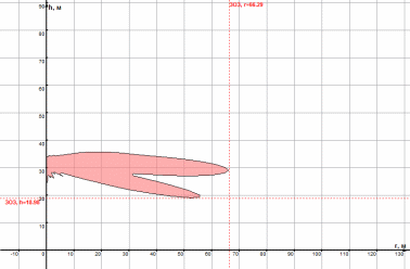 Зона превышения ПДУ в вертикальной плоскости.