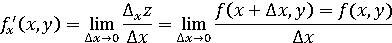 Определение: частной производной (первого порядка) функции аргументов х и у по одному из них, называется предел отношения соответствующего частного приращения функции z к приращению этого аргумента, когда последний стремится произвольным образом к нулю: